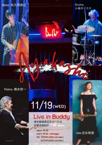 • Ayakashi (Member / piano.橋本啓一 sax.吉永絢香 bass.佐久間高広 drums.小林ダイスケ)