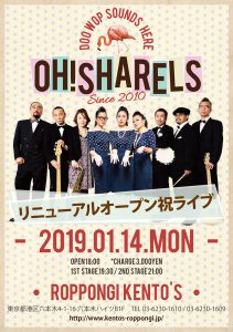 Oh! Sharels [Support] Oh! Sharels [Support] 2019/1/14(月) open 18:00 / start 1st 19:30- 2nd 21:00- MC ¥3,000 place : KENTO'S @六本木 http://kentos-roppongi.jp/ No Data