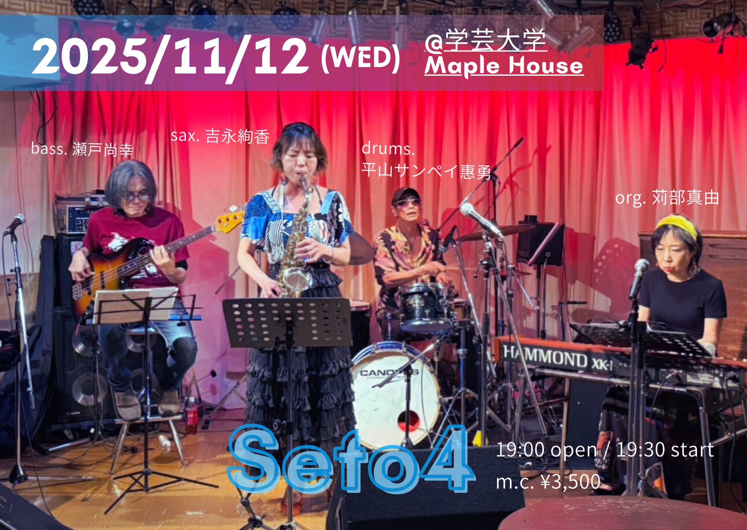 - 瀬戸尚幸quartetto (Member / bass.瀬戸尚幸 drums.平山サンペイ惠勇 organ.苅部真由 sax.吉永絢香)