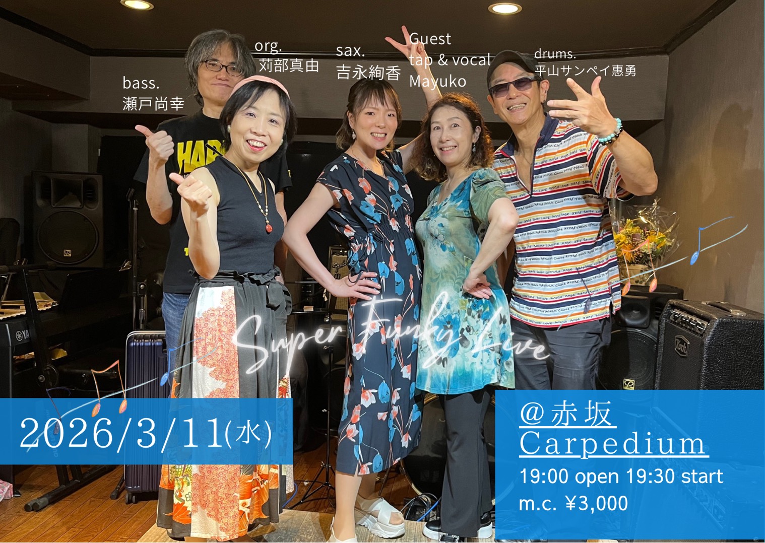 - 瀬戸尚幸quartetto (Member / bass.瀬戸尚幸 drums.平山サンペイ惠勇 organ.苅部真由 sax.吉永絢香)