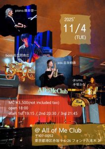 - Hash’s live & Jam (Member / piano.橋本啓一 sax.吉永絢香 bass.佐久間高広 drums.手塚かな)