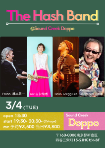 The Hash Band (Member / pf 橋本啓一 sax 吉永絢香 bass.Greg Lee drums.平山サンペイ惠勇)